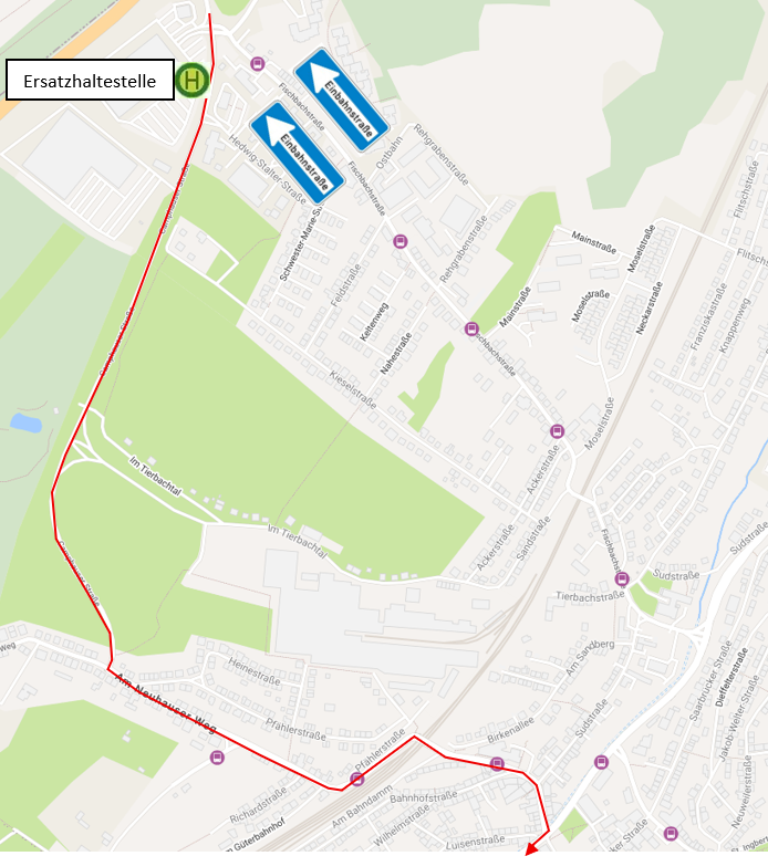 Die Haltestellen auf der Umleitungsstrecke können bei Bedarf bedient werden.