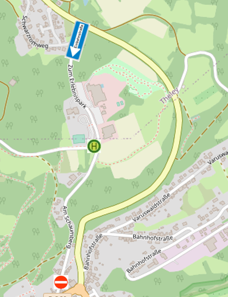 Aufgrund einer Einbahnregelung erfolgt die Zufahrt zum Schaumberg über die Straße Zum Erlebnispark, – die Ausfahrt erfolgt AUSNAHMSWEISE über die Straße Am Schaumberg.