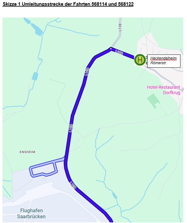Die Haltestellen Ensheim Industriestr., Ensheim Bischof-Eich-Str., Ensheim Kreuzfeldstr., Ensheim Marktweg, Ensheim Brückstr. und Eschringen Am Rebenberg können im o. g. Zeitraum leider nicht bedient werden.