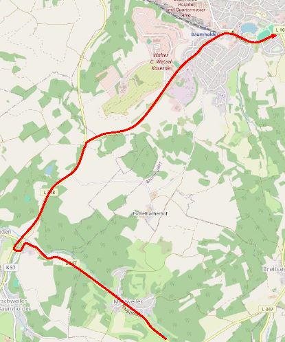 Aufgrund einer Baumaßnahme wird die L 176 zwischen Breitsesterhof und Baumholder von Montag, den 09.03.26 bis vsl. Freitag, den 10.04.2026 voll gesperrt. Die Linie 653 muss daher umgeleitet werden: